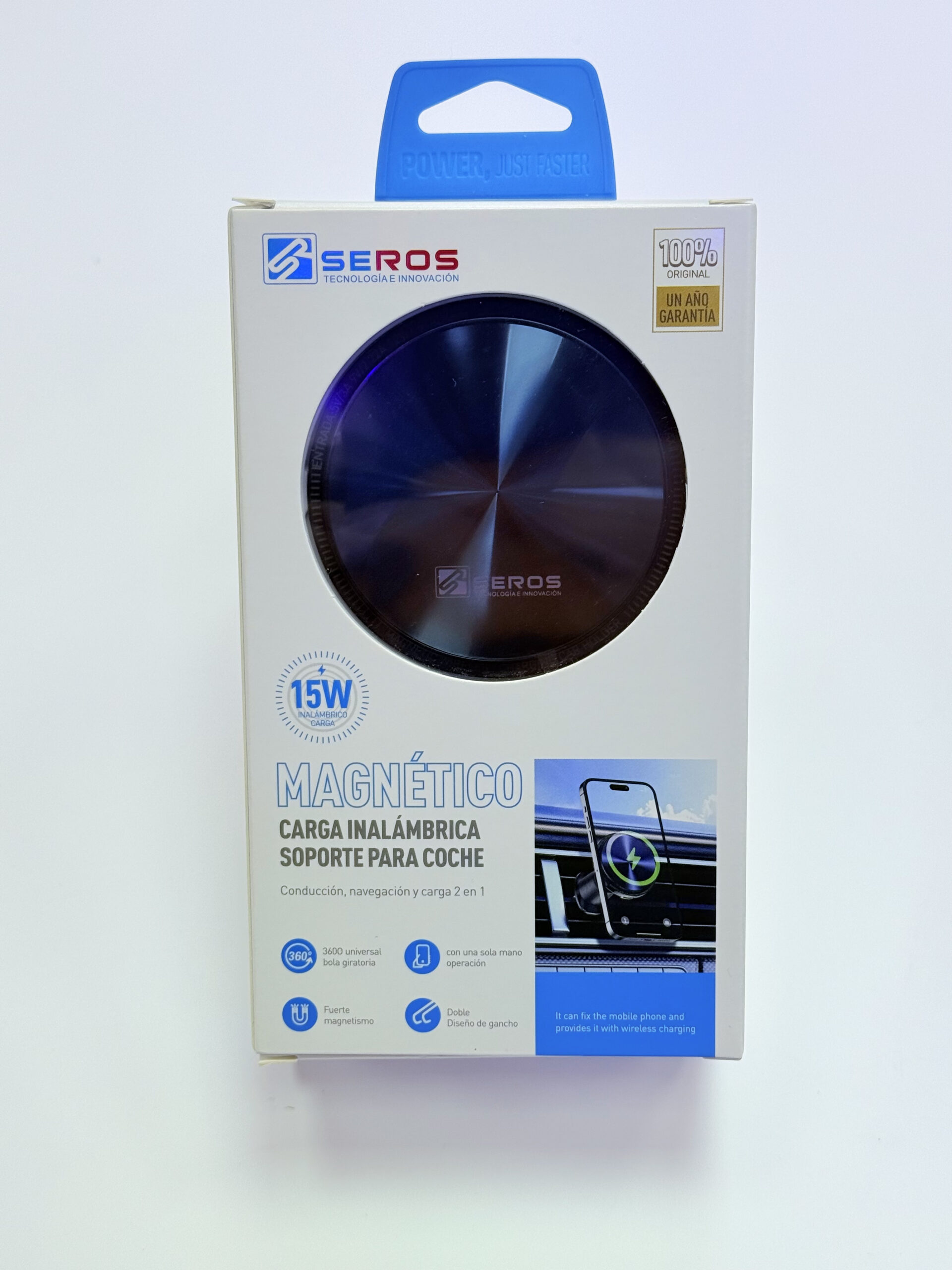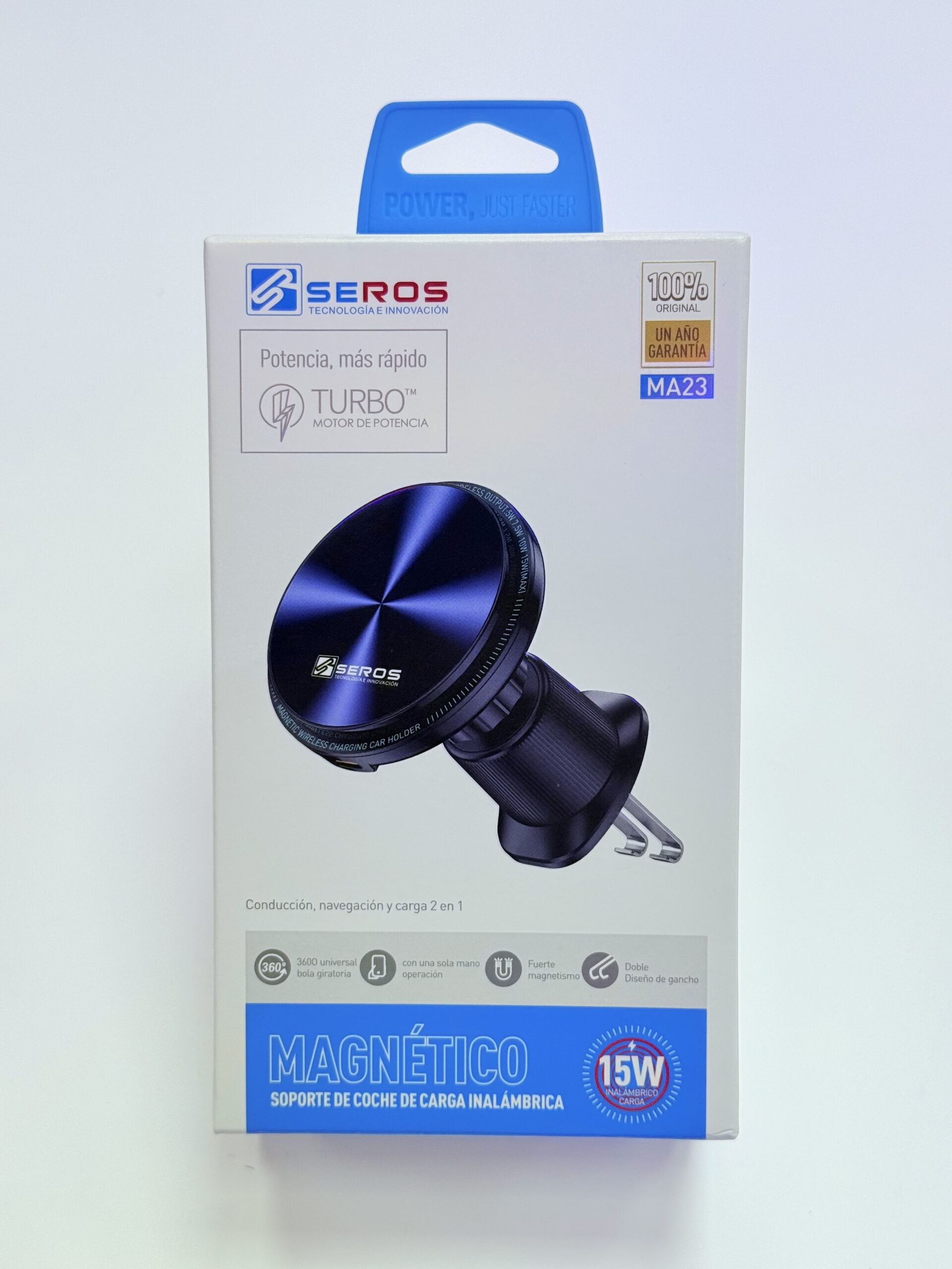 Tipo de producto: Soporte para celular con carga inalámbrica | Marca: Seros | Modelo: MA23 | Color: Negro | Sistema de sujeción: Magnético | Potencia de carga inalámbrica: 15W | Ángulo ajustable: Permite ajustar la posición del teléfono.